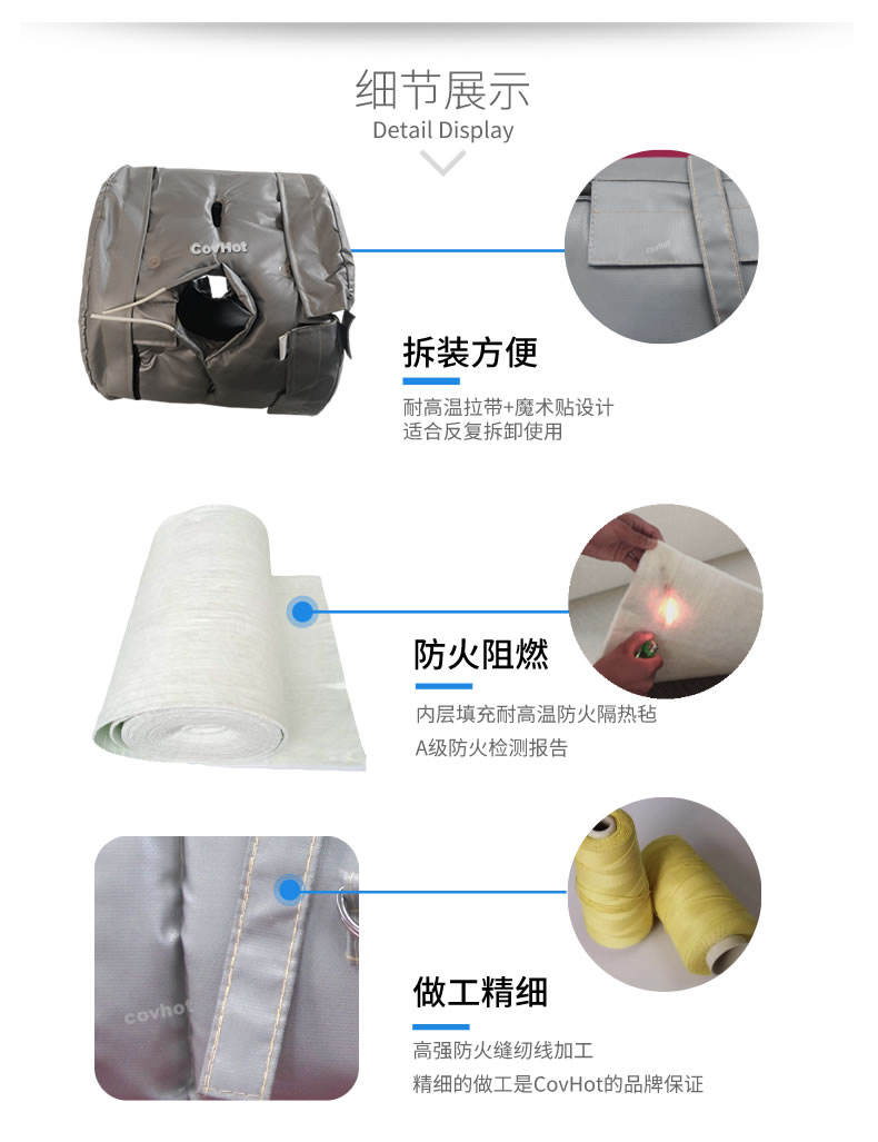 換熱機(jī)組保溫隔熱套采用耐高低溫性能優(yōu)良防火保溫材料;由內(nèi)層、隔熱層、防護(hù)層三層組成,根據(jù)設(shè)備的具體形狀設(shè)計(jì)縫制而成的。近些年越來(lái)越受到有設(shè)備保溫隔熱需求用戶的喜愛(ài)。