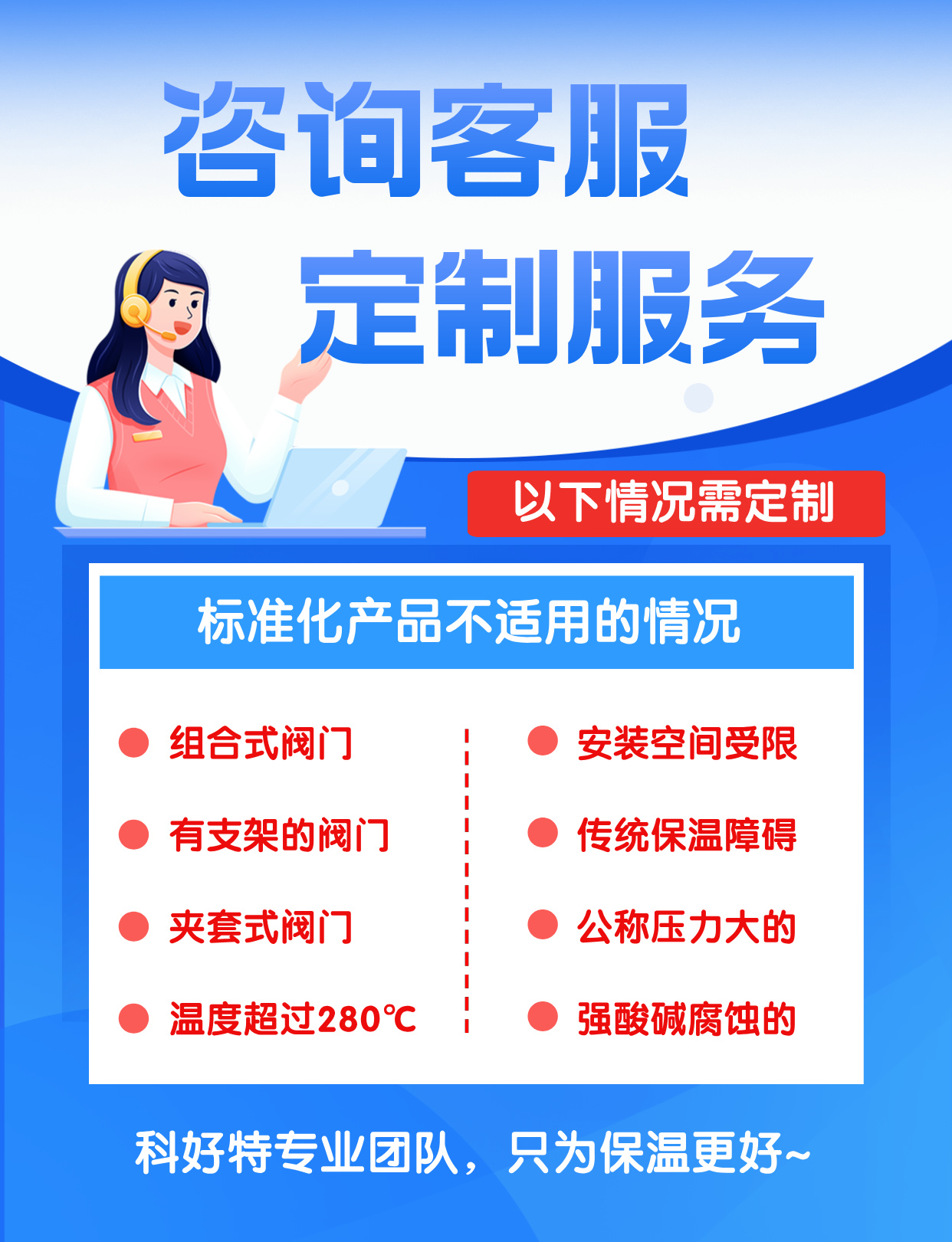 可拆卸截止閥保溫套可以滿足不同領域的柔性保溫應用需求。可以很方便進行拆裝操作,可重復多次使用,以最大化其經(jīng)濟效益,降低熱損耗。對于一些表面形狀特殊、復雜的設備隔熱(防火),柔性隔熱防火)套也能顯示其獨特的優(yōu)勢。經(jīng)測試計算,采用本產(chǎn)品后,通常可節(jié)約熱能達90%以上。有些用戶短投資回收期僅為6個月左右。