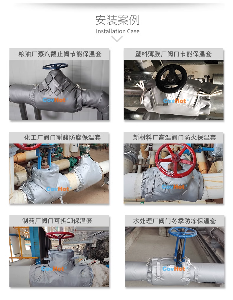 柔性防火罩特為所需保護(hù)的零件、執(zhí)行器、閥門、儲槽和管道的形狀而專門設(shè)計(jì)和量身定做。可為控制器、閥桿、鋼框架和按鈕建立凹進(jìn)處和孔洞;防火罩為特殊定制,可根據(jù)客戶需求在所需位置開設(shè)穿過電源線的通孔,且在安裝前可隨時(shí)進(jìn)行修改。防火罩外觀可采用不同顏色織物制作,以便在系統(tǒng)不同區(qū)域內(nèi)區(qū)分自動(dòng)操作和方便操作人員在緊急狀況下操作。