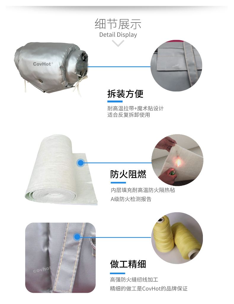 接下來為大家介紹一款非常適合Y型過濾器等異形需頻繁檢修的設備使用的可拆卸保溫套可拆卸保溫套,顧名思義,即可以重復拆卸使用的設備保溫套,不僅保溫效果顯著,而且非常方便拆裝,無需專業人員即可在1分鐘左右完成拆裝,能夠為過濾器的檢修降低時間投入,從而避免企業由于檢修緣故反復做保溫這一難題。